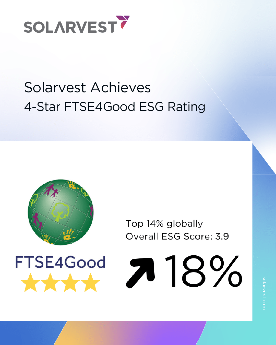 News 31 January, 2026 Solarvest Achieves 4-Star in FTSE4Good ESG Rating, Rated Among Top ESG Performers Globally by solar Read More